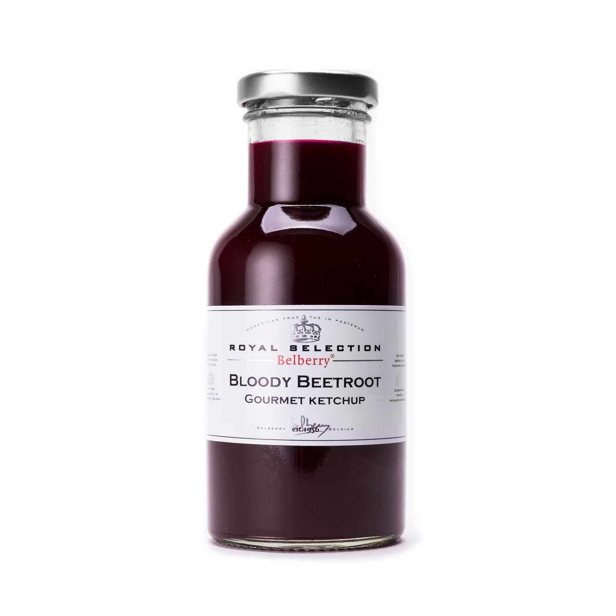 De Belberry Bloody Beetroot Gourmet Ketchup komt in een decoratief flesje van 250 ml. Daardoor staat hij mooi op tafel en is hij ook een originele toevoeging aan een borrel- of cadeaupakket.