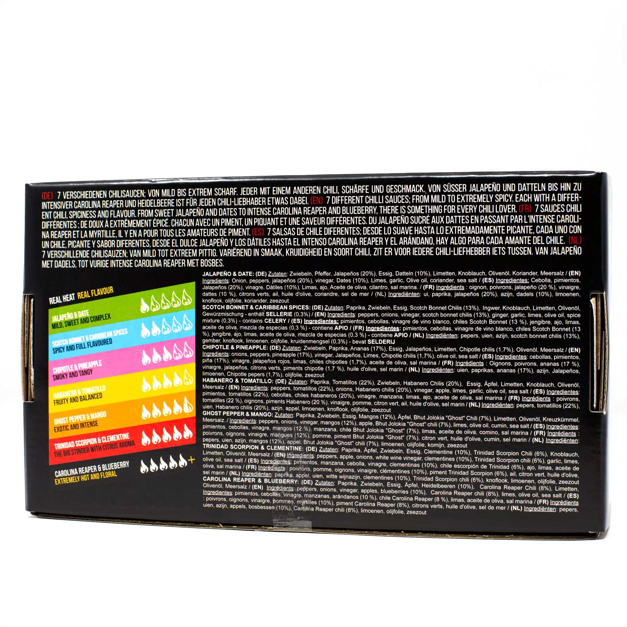 De Crazy Bastard Mild to Very Hot Set biedt een uitgebreide collectie van 7 pittige sauzen, variërend van milde tot extreme hitte. Iedere saus heeft een unieke combinatie van ingrediënten, perfect voor het toevoegen van intensiteit aan een breed scala aan gerechten. Van de mildere Jalapeño & Date tot de zeer hete Carolina Reaper & Blueberry, deze set biedt een pittige smaakexplosie die je smaakpapillen uitdaagt.