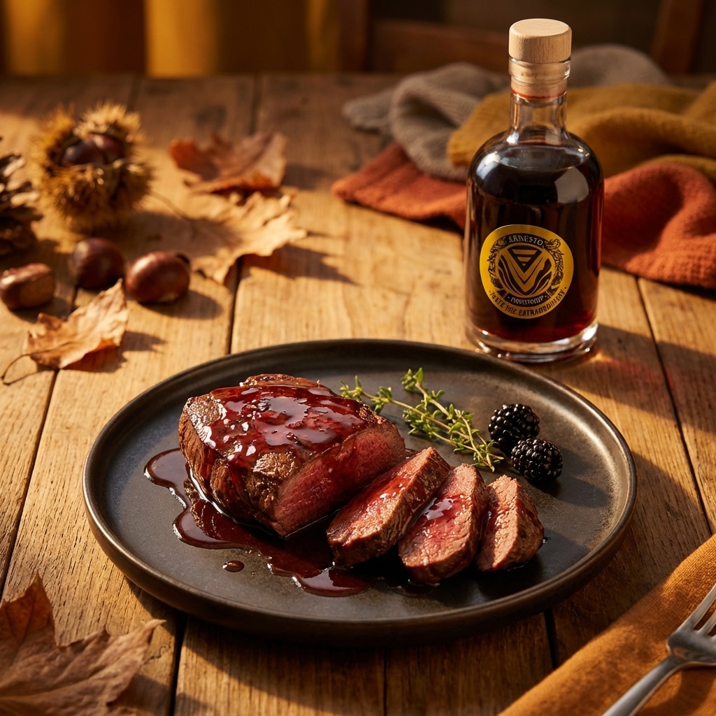 De basis is ingedikte Ruby port, gecombineerd met een krachtige maar elegante mix van pepers, citrus, tijm en kaneel. En het “geheime ingrediënt”? Tijd. Door de stroop lang genoeg te laten rijpen ontstaat de optimale smaak en textuur.