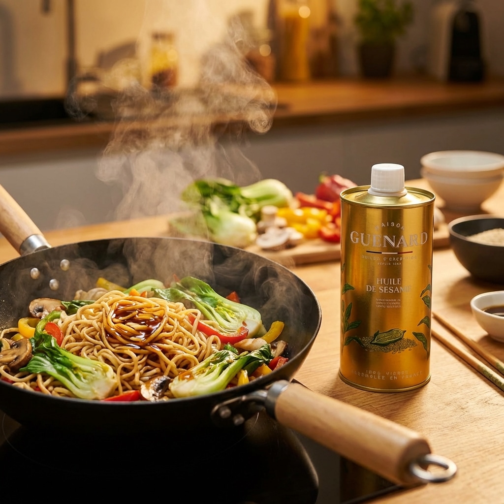 De virgin pompoenpitolie van Guénard wordt gemaakt door het koud persen van pompoenpitten. Daardoor blijft het product puur en natuurlijk, met een intens aroma en een herkenbare, diepe kleur. Een mooie keuze voor iedereen die graag kookt met oliën die echt iets toevoegen.