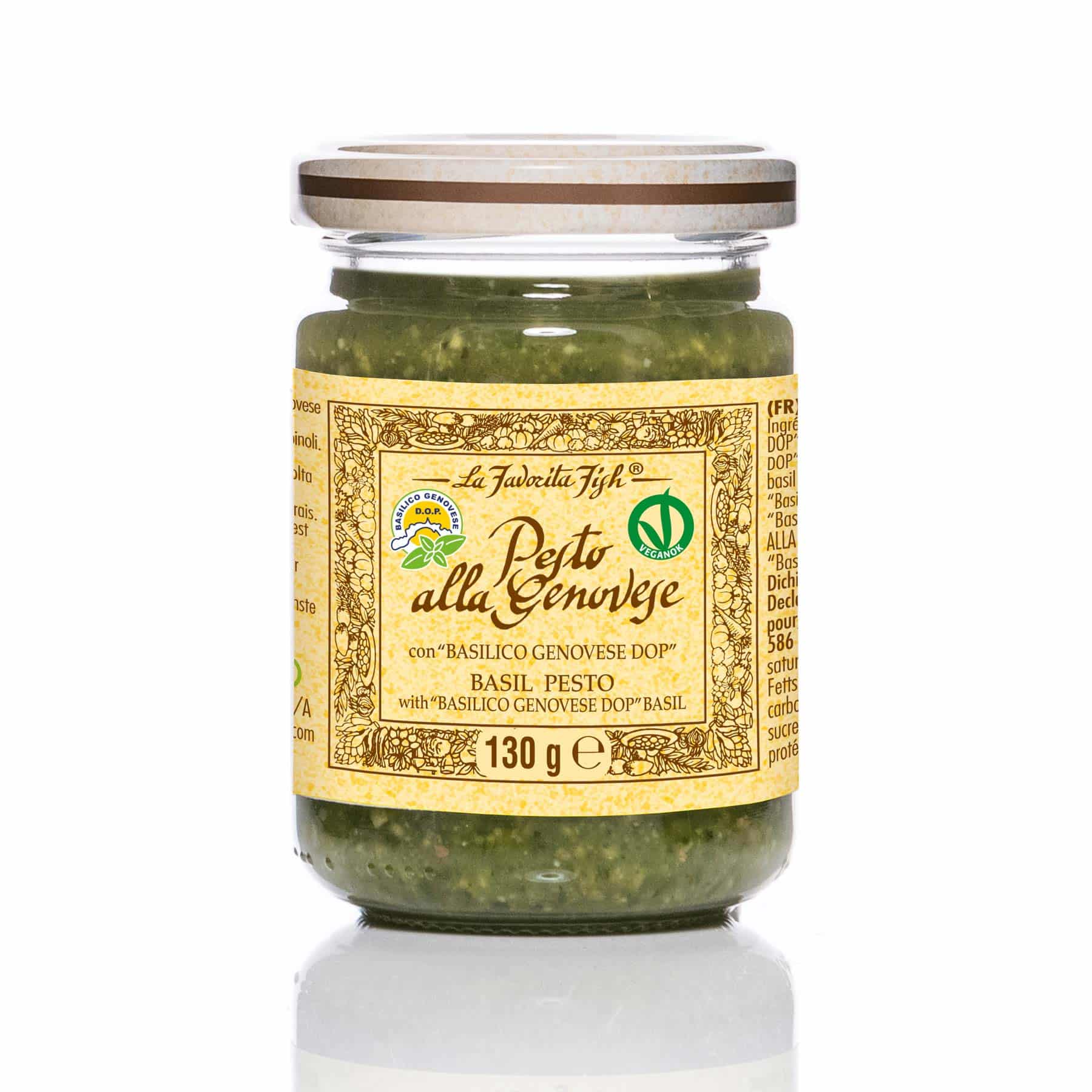 Deze groene pesto is een Pesto Genovese DOP: dat betekent dat de belangrijkste smaakmaker – Basilico Genovese DOP – uit het beschermde herkomstgebied komt en volgens vastgelegde kwaliteitsnormen is geproduceerd. Je proeft daardoor een pesto die kruidig, fris en perfect in balans is.