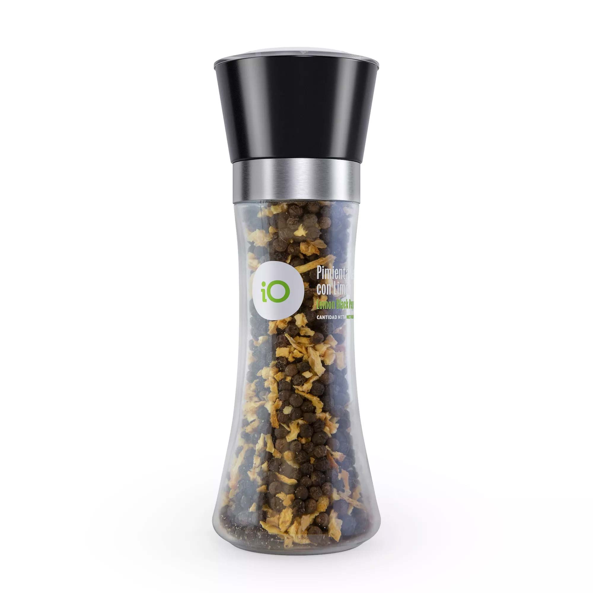De iO Zwarte Peper met Citroen tilt je gerechten naar een hoger niveau met een unieke combinatie van klassieke zwarte peperkorrels en gedehydrateerde citroenschil. Deze verfijnde mix biedt een balans tussen pittige peper en een frisse citrusnoot, waardoor het ideaal is voor het op smaak brengen van een breed scala aan gerechten.