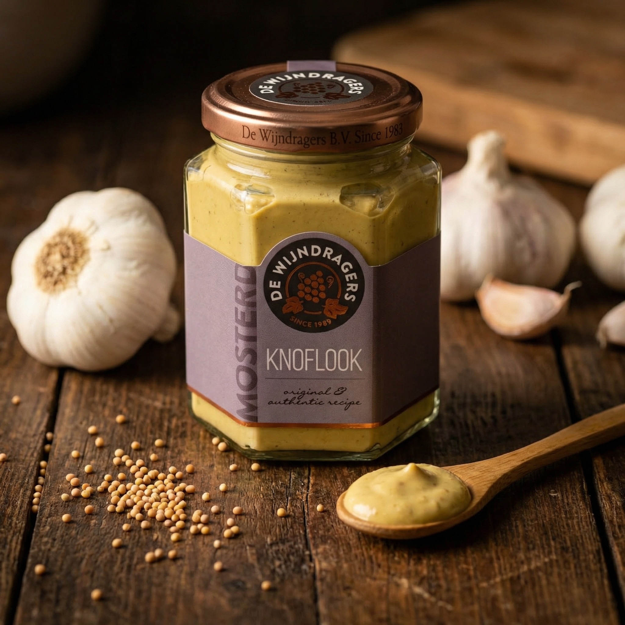 Deze knoflookmosterd combineert het vertrouwde mosterdkarakter met de warme, hartige smaak van knoflook. Daardoor krijg je een saus die toegankelijk blijft, maar wél direct extra smaak toevoegt. Ideaal als tafelsaus, maar ook als snelle smaakmaker in je keuken.