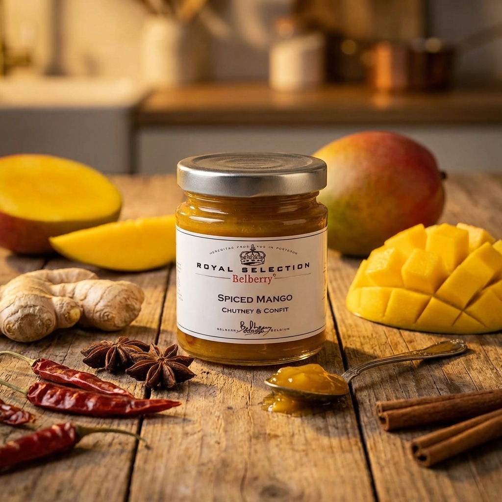 Met Gekruide Mango Chutney van Belberry geef je elk gerecht in één lepel een tropische smaakboost: rijpe mango, subtiele specerijen en een heerlijk gebalanceerde zoet-kruidige diepte. De stukjes mango zorgen voor bite en maken dit een chutney die niet “op de achtergrond” blijft, maar echt het verschil proeft.