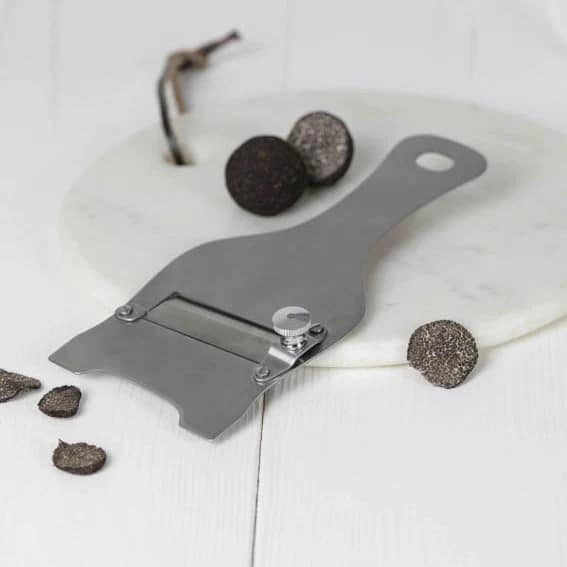 De truffelschaaf RVS is een gespecialiseerd keukengerei dat ontworpen is voor het nauwkeurig en consistent schaven van truffels. Vervaardigd uit roestvrij staal, staat het garant voor duurzaamheid en roestbestendigheid. Met zijn verstelbare mes kan de dikte van de truffelplakjes naar wens aangepast worden, wat essentieel is voor het op smaak brengen van gerechten met de delicate truffelaroma’s.