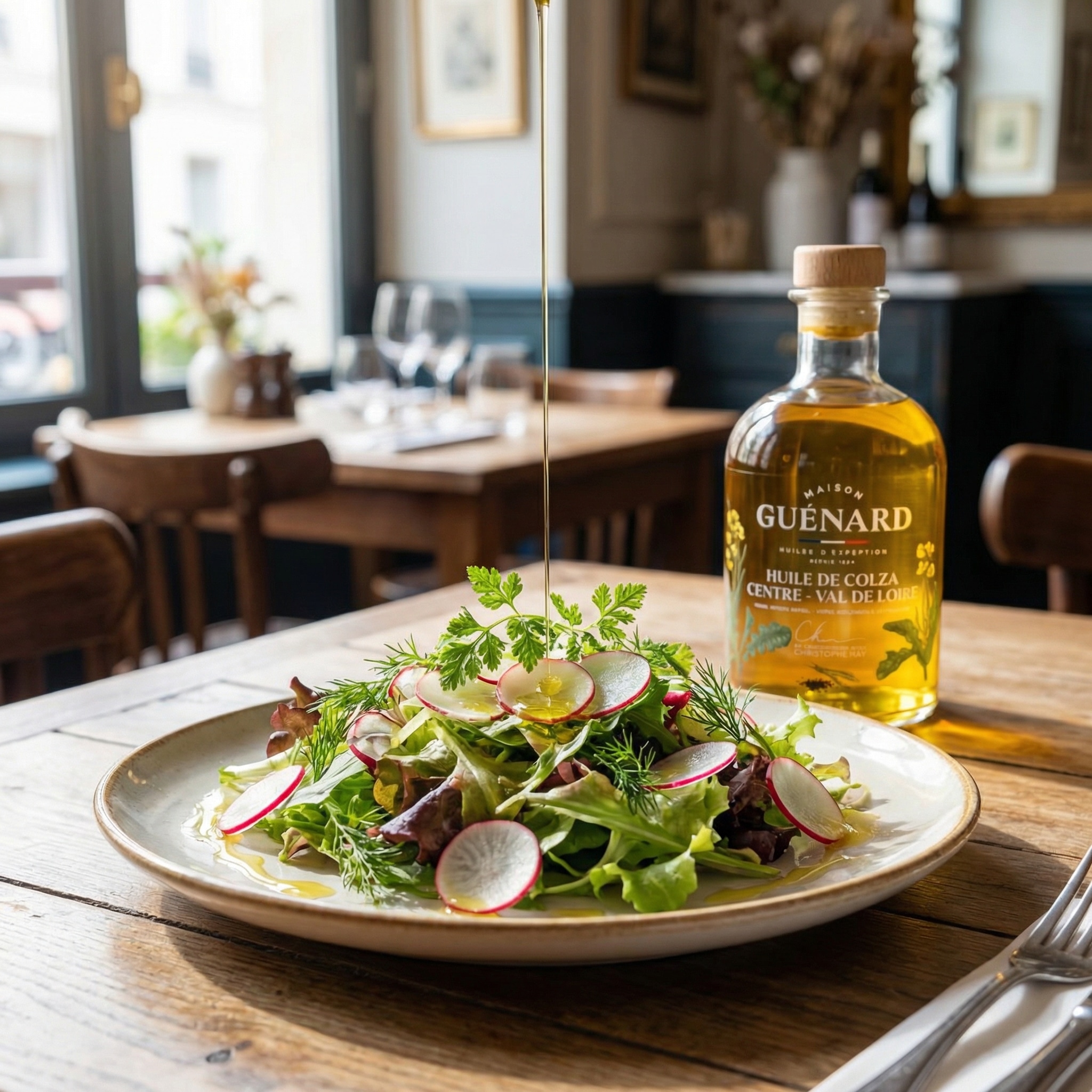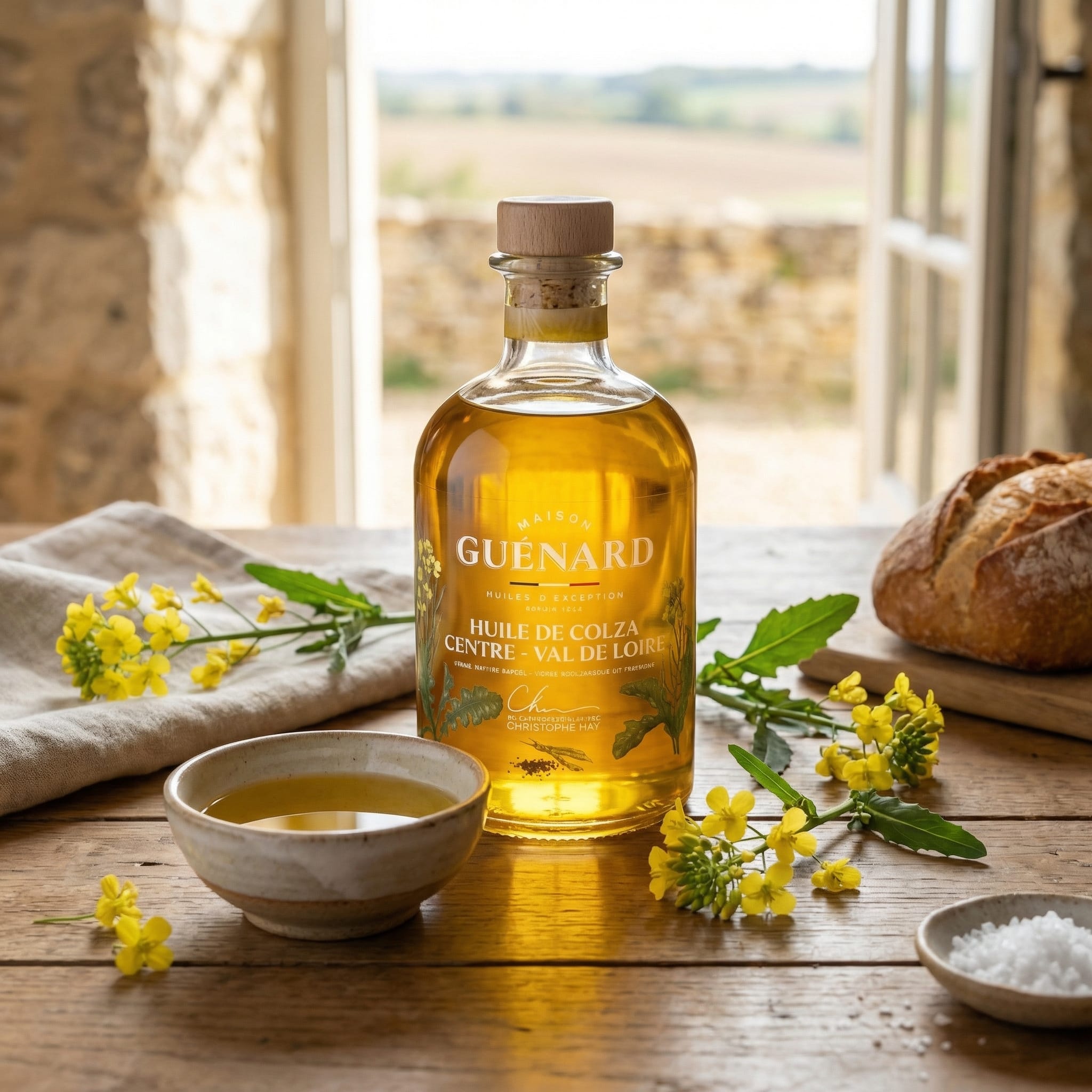 100% Virgin Koolzaadolie uit de regio Centre, gesigneerd door Christophe Hay – 240ML – Guénard – Een Luxe Olie uit de Franse Regio