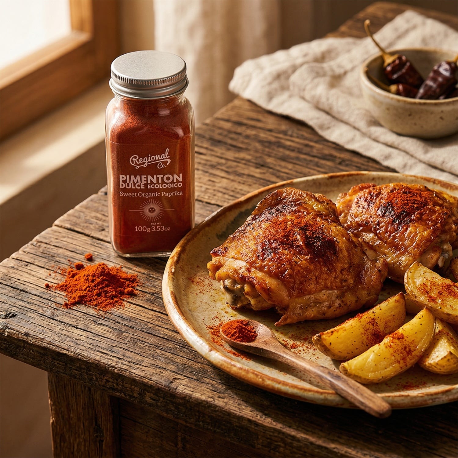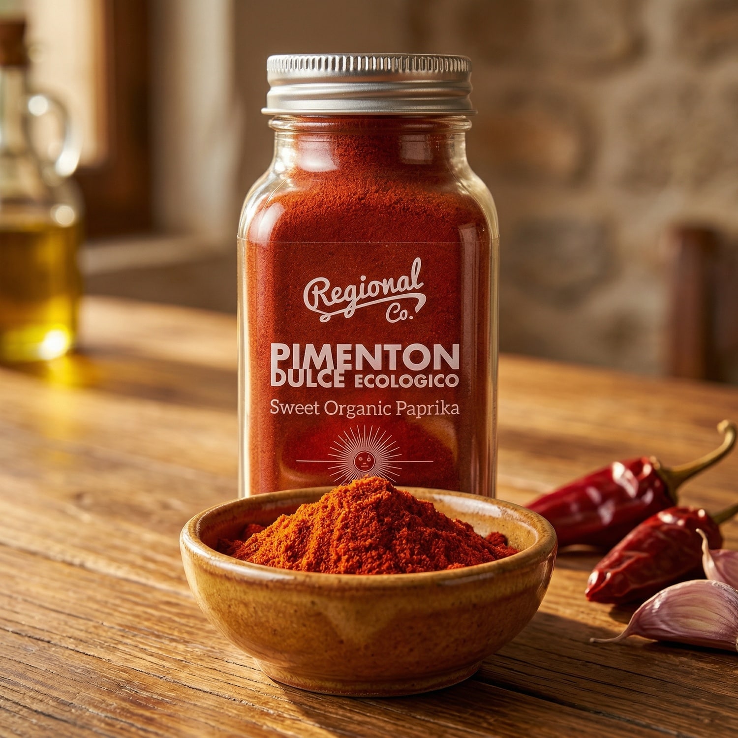 Paprika’s zijn ooit meegenomen vanuit Mexico, Panama en Peru. Nu zijn ze niet meer uit de Spaanse keuken weg te denken. Van gedroogde, biologisch geteelde zoete paprika’s wordt de bijzonder smaakvolle zoete paprikapoeder (Pimenton Ducle) van Regional Co. gemaakt. De ultieme toevoeging in bekende gerechten als Paella en een uiterst belangrijk ingrediënt in onder andere Chorizoworst.