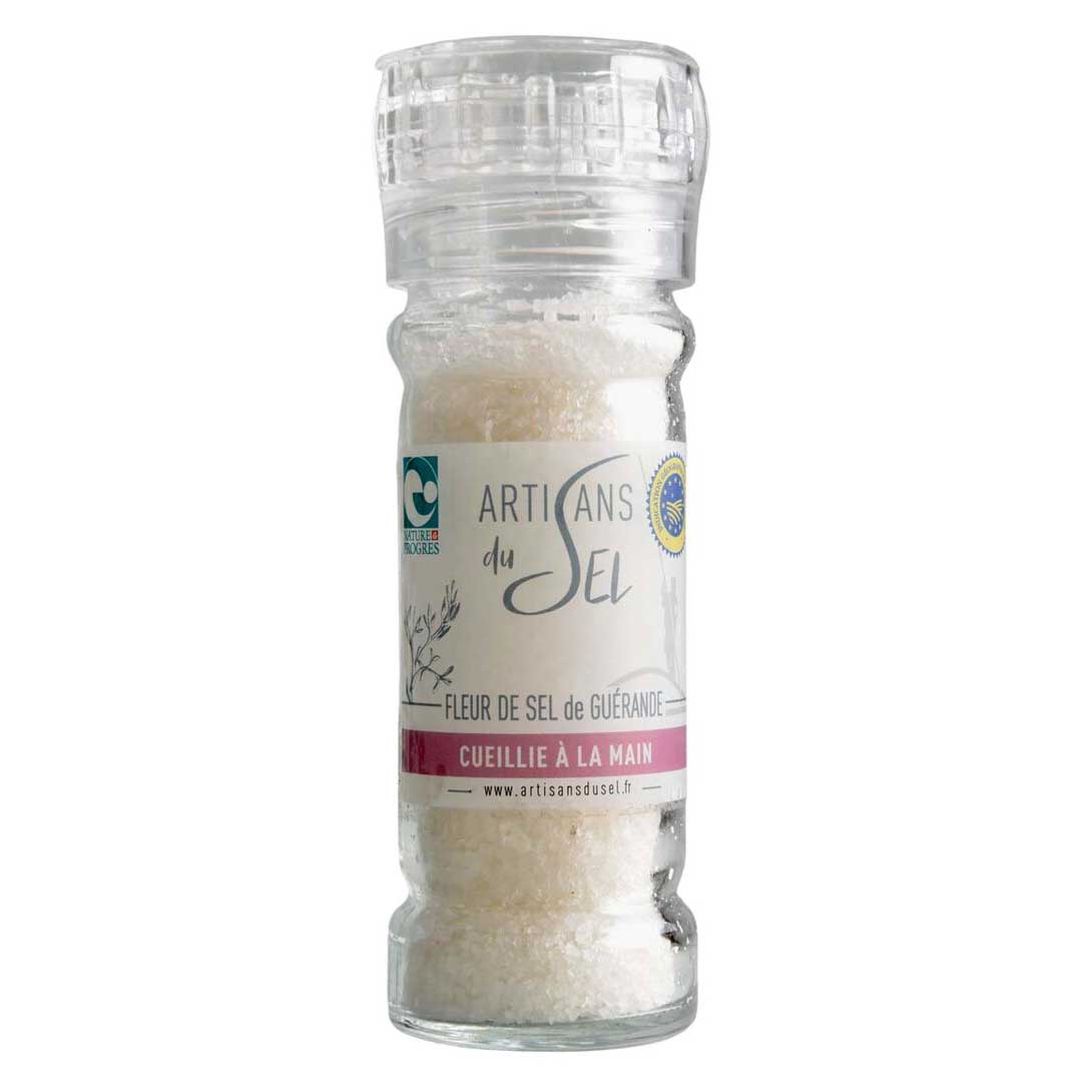 De zoutmolen is voorzien van dubbelgeslepen mesjes en is navulbaar. Om ervoor te zorgen dat de zoutkristallen niet gaan klonteren, mogen zij niet in aanraking komen met vocht of kookdamp. Fleur de Sel de Guérande bewaar je dan ook het beste op droge plaats, niet in de buurt van het fornuis.